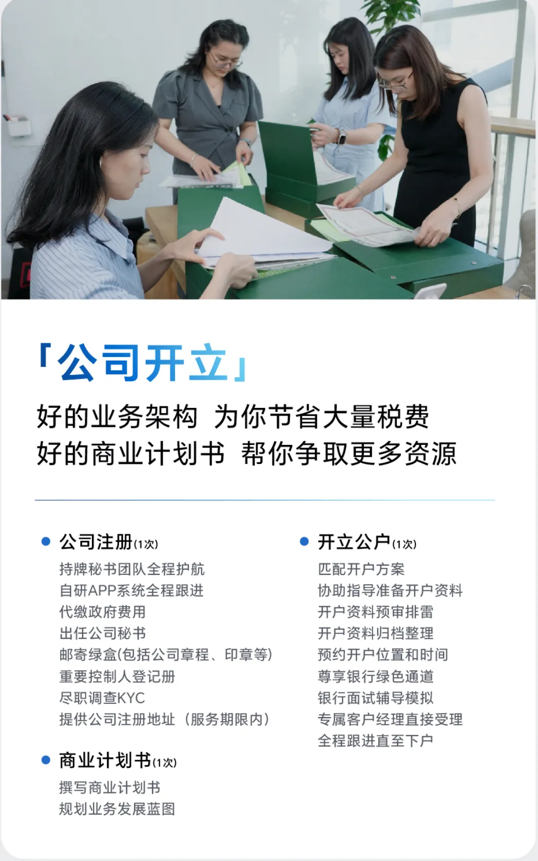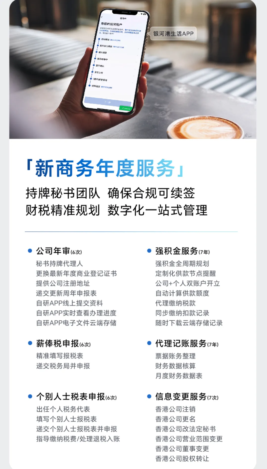 银河“真经营Max(7)”协助客户快速完成香港公司注册,提供持牌秘书团队全程护航,出任公司秘书并提供注册地址。同时,帮助开设银行公户,撰写商务计划书,规划业务发展,还支持开设公司分行,助力企业快速启动在港创业项目。