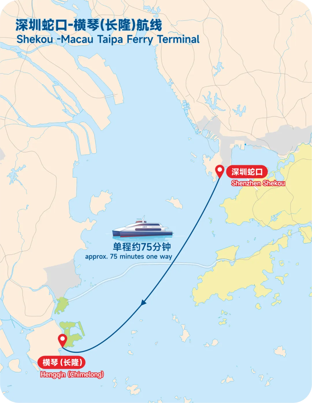 搭乘高速客轮直达横琴(近长隆)、澳门