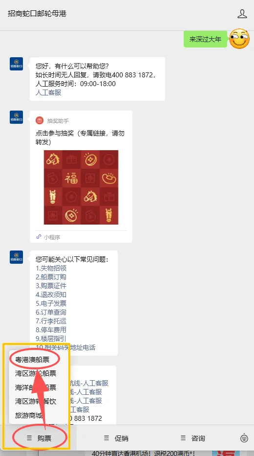 优先通过「招商邮轮」官方公众号或小程序购票,信息最准确,余票情况一目了然,优惠活动第一时间同步。