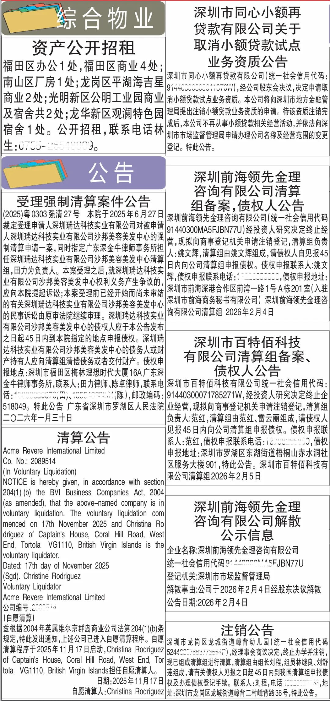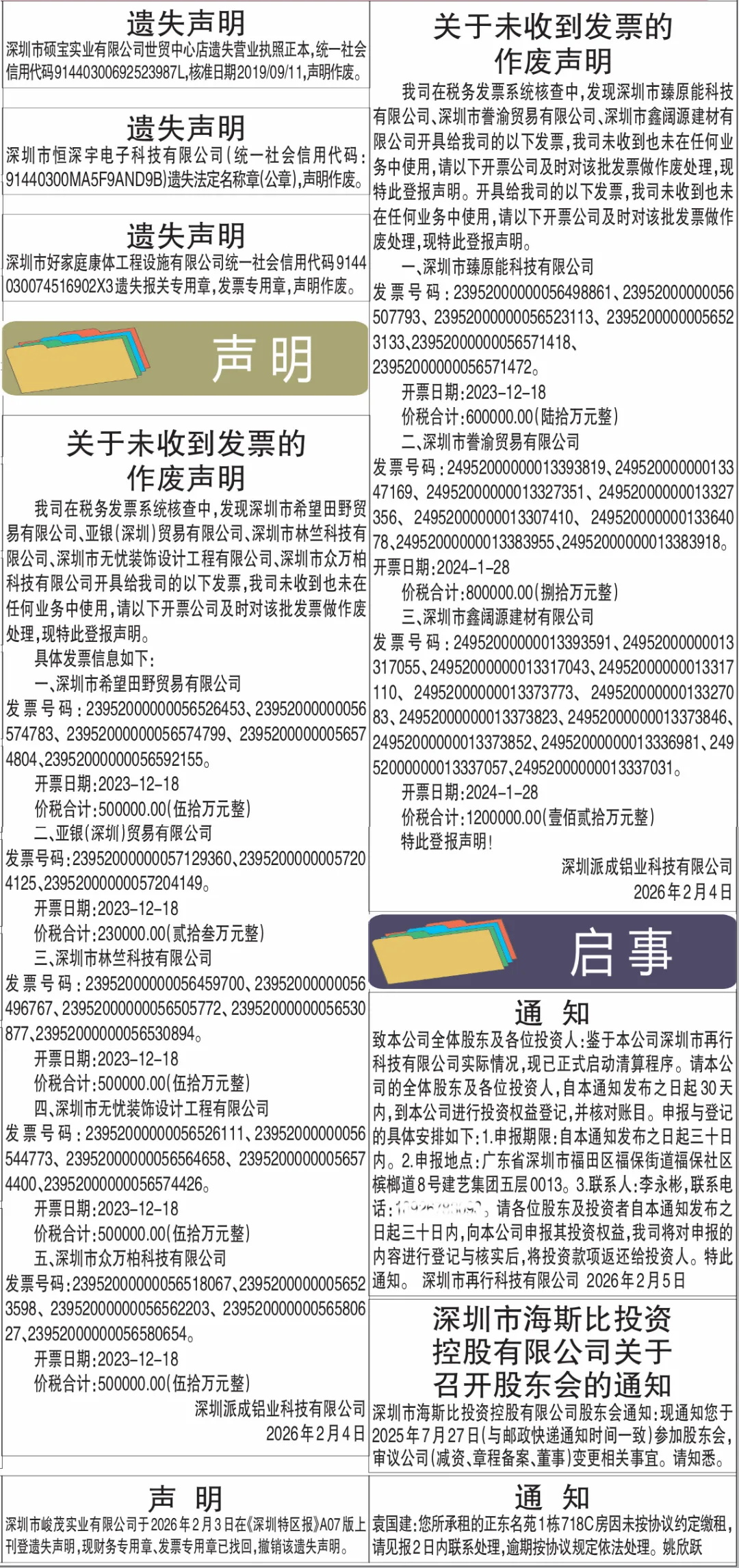深圳特区报登报公告通知作废声明
