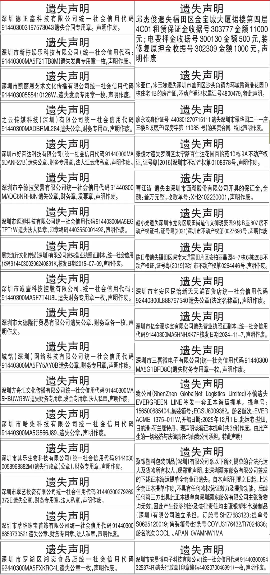深圳登报