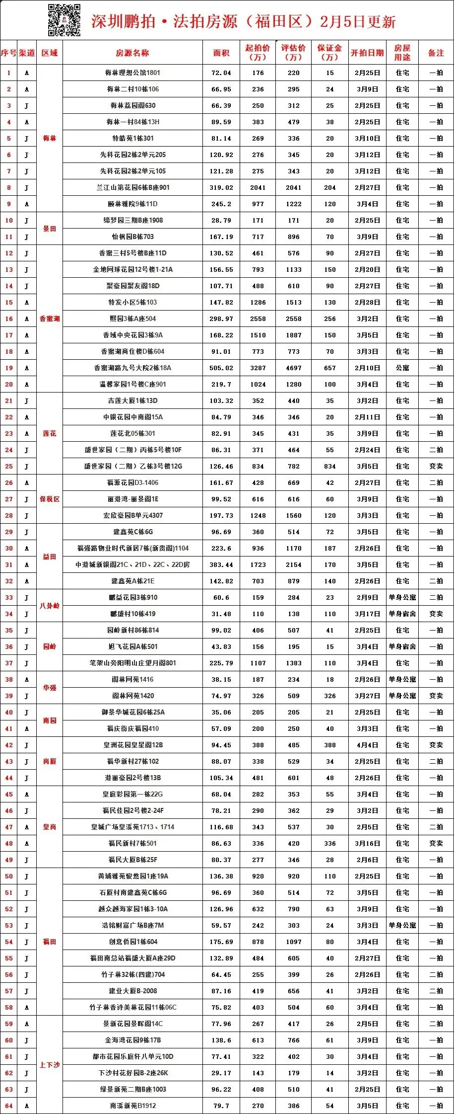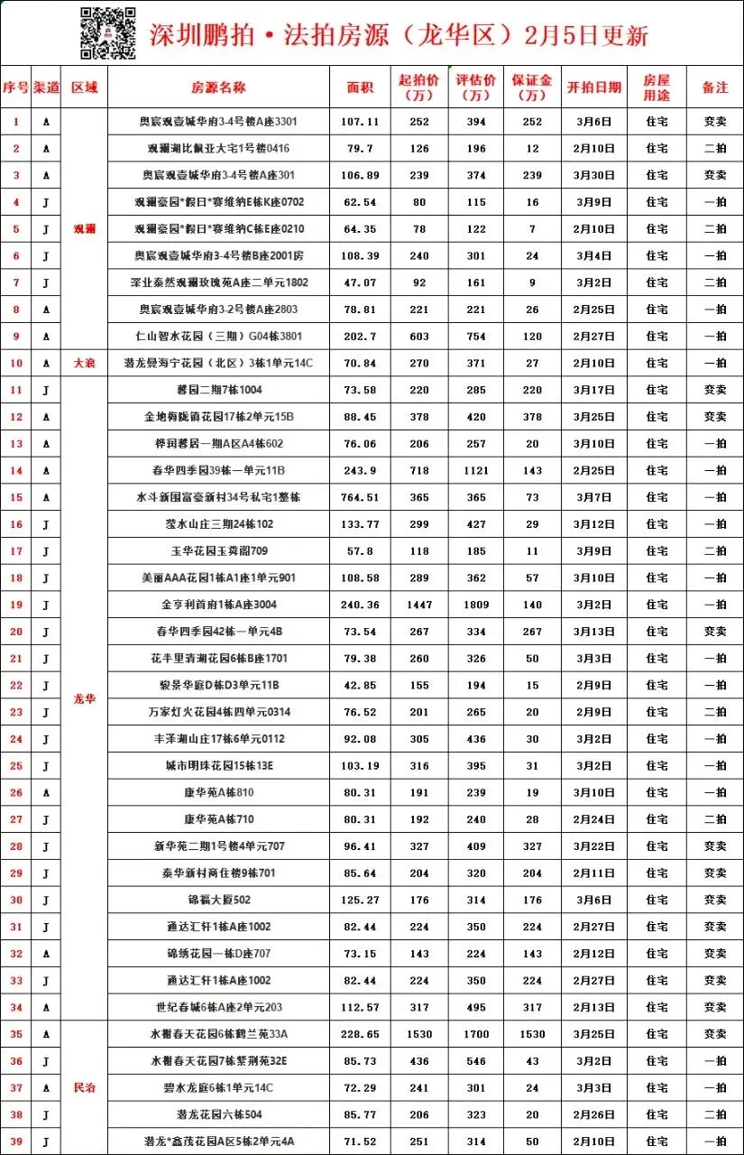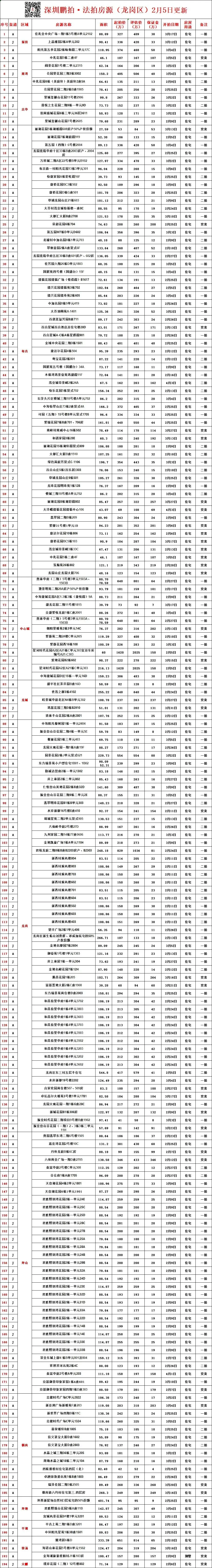 深圳各区所有法拍房源统计-2月5日