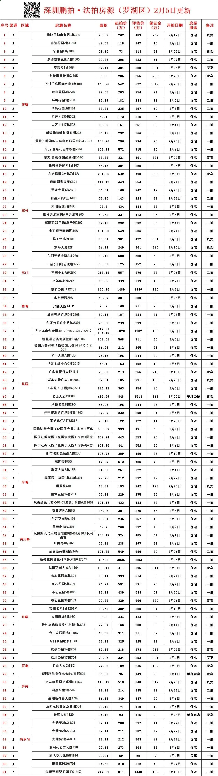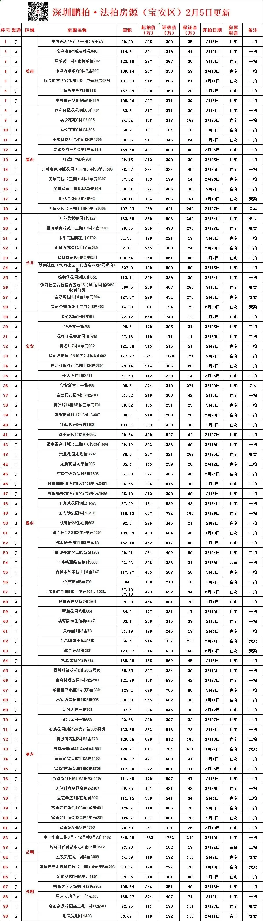 >深圳各区所有法拍房源统计-2月5日