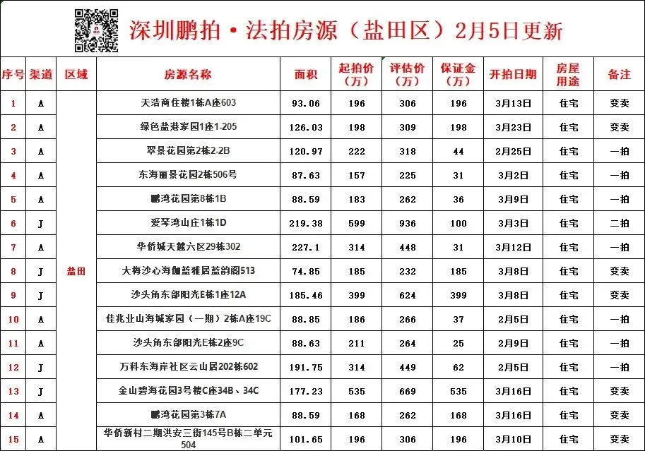 深圳法拍房源-2月5日