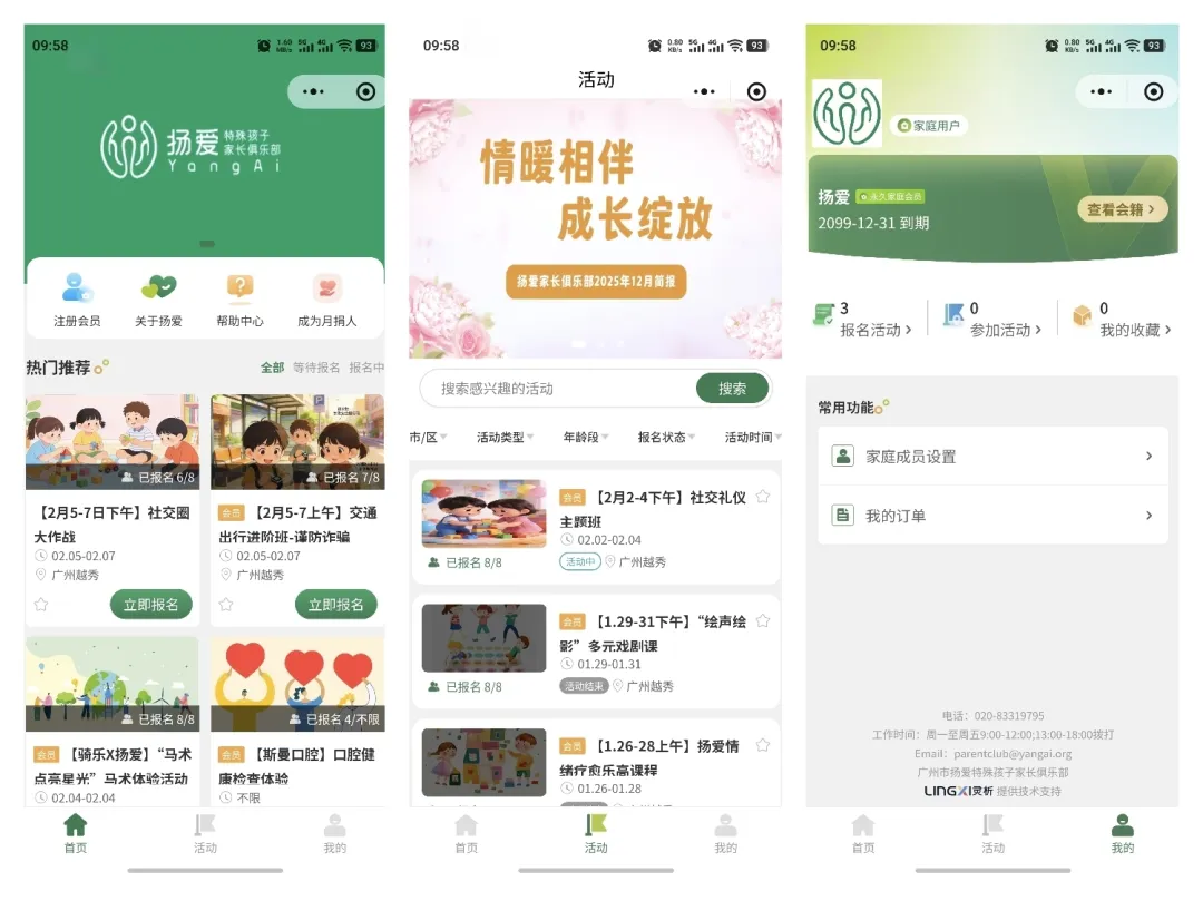 在这三个层面的考量之下,广州扬爱在2025年正式上线家庭服务数字化管理系统,将资源中心原有的线下服务与资源升级为线上平台,增强资源线上共享的功能与服务价值,系统不仅实现了资源的线上整合与高效匹配,也推动了个案管理服务向更系统、更深入的方向发展,切实为心智障碍者家庭提供更深入、专业、便捷且具有持续性的支持。目前登记在册的服务家庭档案超3700多户,其中活跃使用系统的家庭数超过1700户。随着数字化管理系统的上线,扬爱将通过家庭在系统上的活动报名、资讯获取、需求记录、服务选择等多维度数据,动态观测每户家庭的需求和广州市在册的心智障碍者家庭整体需求画像,为服务设计与资源调配提供依据。