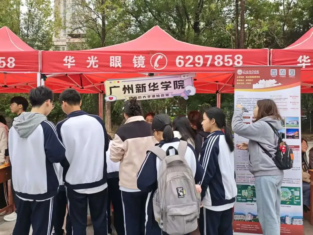 在博罗中学的摊位宣传活动中,团队备妥特色小礼品,以饱满热情主动宣讲、耐心答疑。现场气氛热烈,同学们踊跃提问,从录取分数线、特色专业到校园环境、交通条件,队员们逐一细致解答,全面展现广州新华学院的整体风貌。团队还深入解读了“博学、笃行、正心、自强”的校训内涵,让大家在了解学校硬实力的同时,进一步感受学校的精神底蕴,整场活动有序且富有感染力。