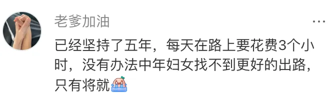而我也在一个关于深圳通勤时长的贴子下面看到一个比较心酸的留言: