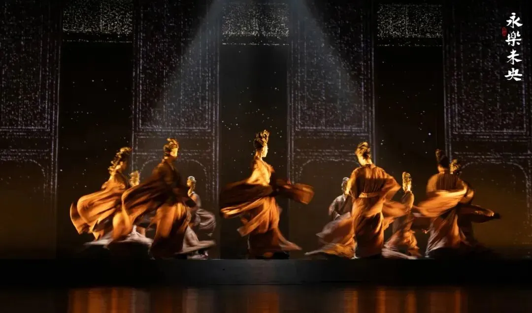 舞剧《永乐未央》以首批全国重点文物保护单位山西芮城永乐宫为题材,以1950年代因修建三门峡水利工程,永乐宫迁建为叙事主线,在跨越七百余年的时空对话中,串联起“古建、壁画、琉璃、传承”四重美学维度的四个段落。