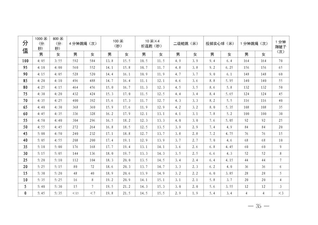 以下是2026年体育中考各项目评分标准: