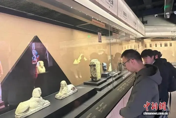 2月5日,“尼罗河的赠礼——古埃及文物与数字艺术体验展”在南越王博物院王墓展区举行开幕式,并开展媒体导览活动。中新社记者 程景伟 摄