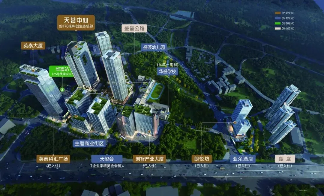 🔹超大体量产城综合体 —— 盛荟城总建面约85万㎡,含40万㎡产业空间(已投用20万㎡)、集高端住宅、甲级写字楼、商业配套等多元业态于一体。