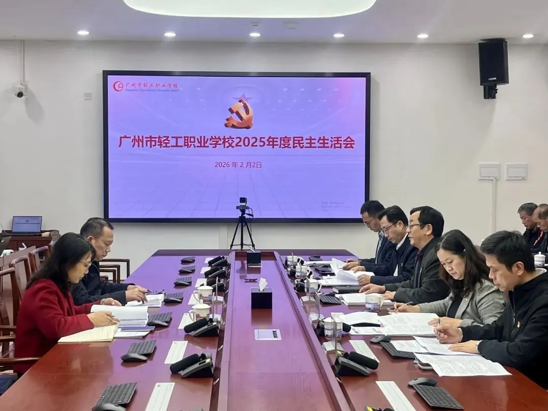 2026年2月2日下午,广州市轻工职业学校党委顺利召开2025年度民主生活会,围绕“深入学习贯彻习近平新时代中国特色社会主义思想,全面贯彻落实党的二十届四中全会精神,以打好攻坚战、持久战的决心和恒心,锲而不舍落实中央八项规定精神,推进作风建设常态化长效化,以优良作风凝心聚力、真抓实干,奋力开创中国式现代化建设新局面”这一主题,结合学校工作实际,认真对照五个方面深刻查摆问题,认真剖析反面典型案例,开展批评与自我批评,为实现“十五五”良好开局筑牢坚实的思想基础。