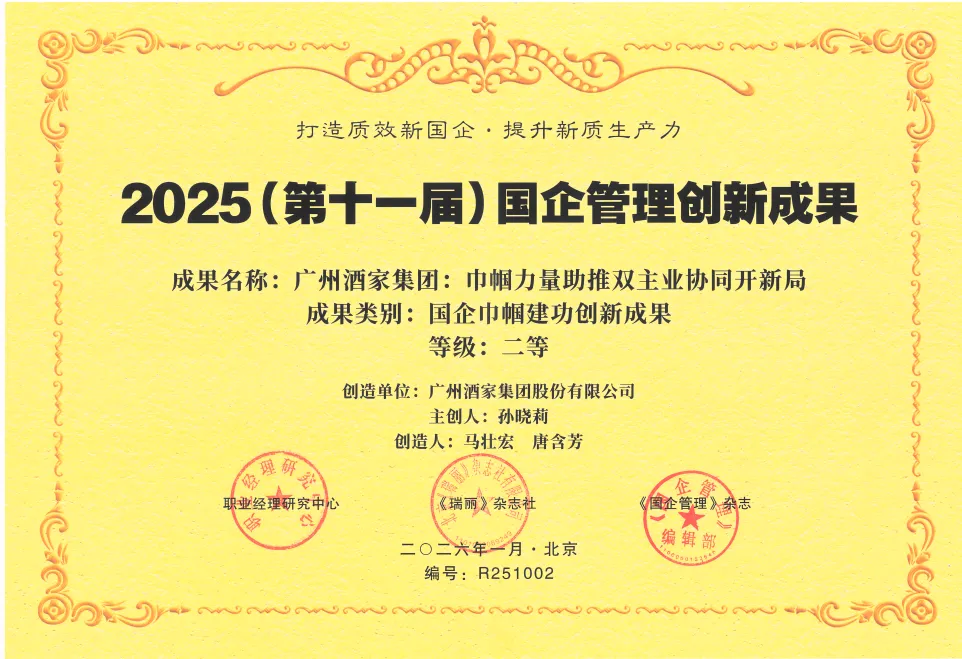 站在“十五五”开局的关键节点,广州酒家集团将以此次获奖为契机,持续深化人才与组织机制改革,以系统布局谋全局,以纵深推进求实效,着力构建组织敏捷、人才辈出、活力迸发的现代化企业治理新格局,在高质量发展道路上行稳致远,为行业发展与广州经济建设贡献广酒力量。