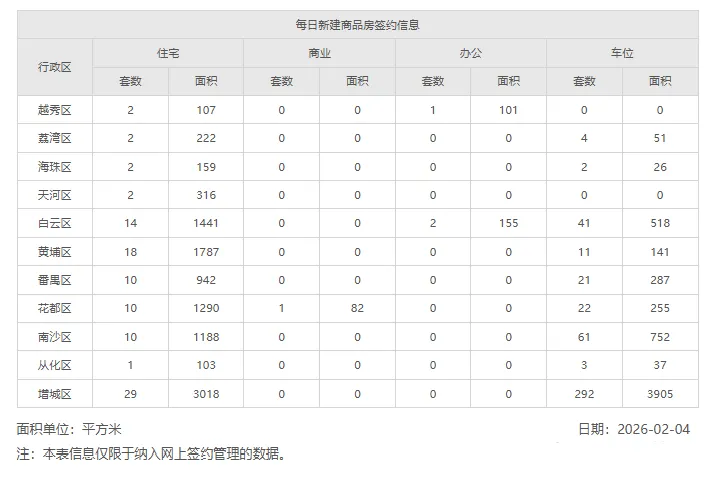 广州&佛山新房网签数据-2026年2月4日