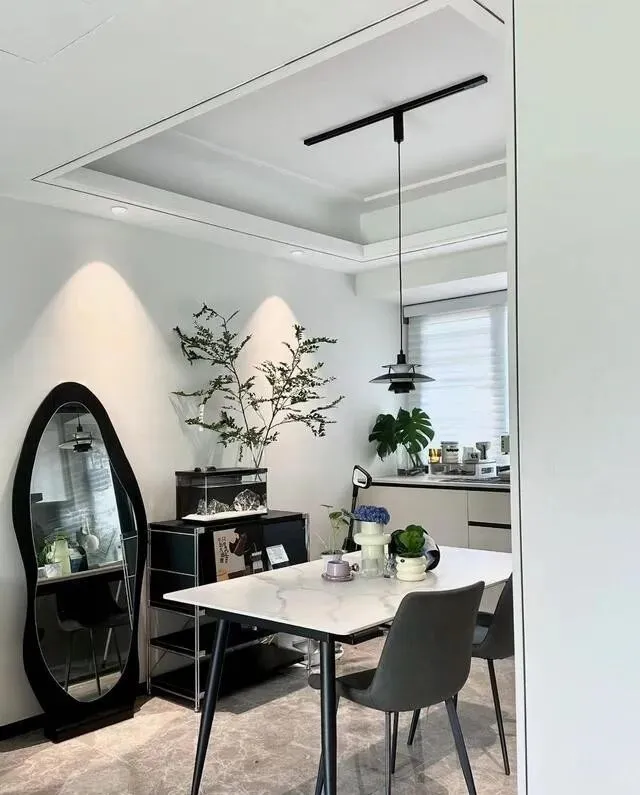 就这个搭配 , 氛围感直接拿捏住了 , 旁边还见缝插针放了个半高柜和全身镜 , 灵活又不挤 , 朋友来家里吃饭 , 没有一个不夸的。