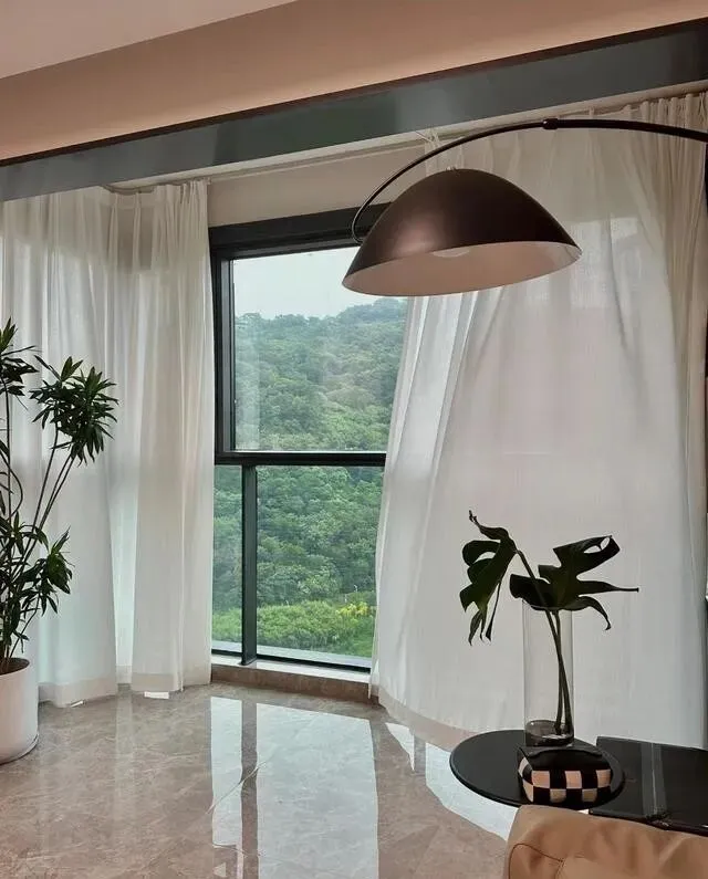 装的白色幻影纱帘 , 透光不透人 , 朦朦胧胧的特别有感觉。