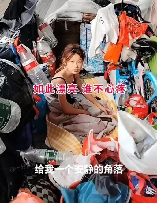 一辆不远处的共享单车,已然被这对母女视作私人物件。车把的地方、车座的旁边,挂满了诸如衣物、塑料袋等各类杂乱之物,鼓鼓囊囊的,那就是她们母女俩所有的家当。在风吹日晒之际,这辆平常的共享单车,变成了她们漂泊途中仅有的“依靠”,承载着她们辗转奔波的岁月。