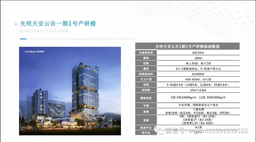 光明天安云谷,光明科学城核心,全新甲级写字楼全球出售