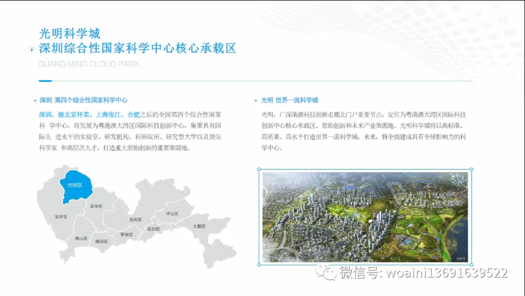 光明,广深港澳科技创新走廊北门户重要节点,定位为粤港澳大湾区国际科技创新中心核心承载区、原始创新和未来产业策源地。光明科学城将以高标准、高质量、高水平打造科学城,未来,将全面建成具有全球影响力的科学中心。