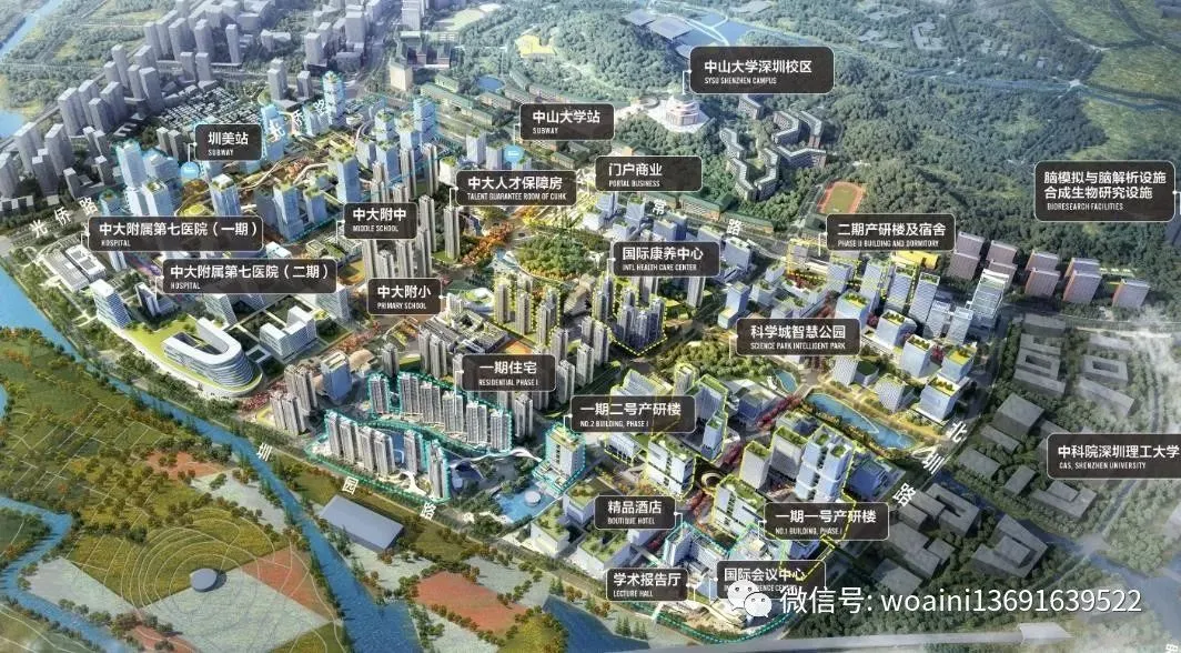 教育资源:中山大学深圳校区、中科院深圳理工、中大附中、中大附小、幼儿园
