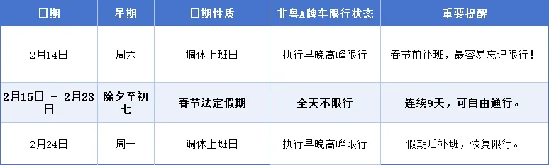 为了让您一目了然,我们梳理了春节前后的完整限行安排,出行前看这一张表就够了: