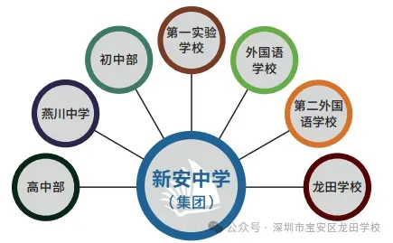 深圳市新安中学(集团)是广东省优质基础教育集团,下属高中部、燕川中学、初中部、第一实验学校、外国语学校、第二外国语学校、龙田学校等七个校区。集团教学班共356个,师生19130人,其中学生17713人,教职工1417人,其中,专任教师1260人。集团师资力量雄厚,有省、市、区名师工作室38席,特级教师、正高级教师9人,高级教师194人,博士教师11人,区级以上骨干教师403人。集团秉持“育人为本、和谐发展”办学理念,以“办卓越集团,创滨海名校”为办学目标,龙头学校高中部是广东省国家级示范性普通高中、广东省一级学校、广东省德育示范学校、广东省中小学心理健康教育特色学校、深圳市教育工作先进单位;集团曾获广东省第二届中小学特色学校建设成果一等奖等荣誉;2024年,集团被广东省教育厅评选为首批“广东省优质基础教育集团”。