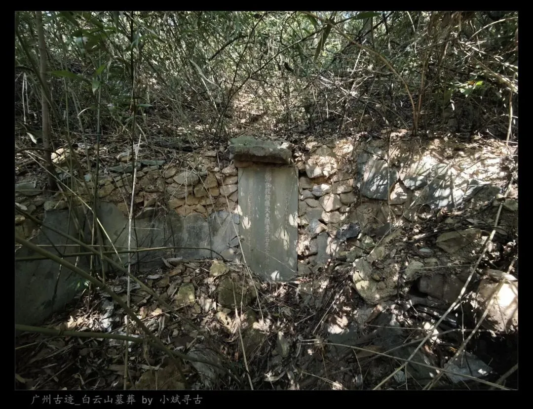 探访侧记:朱介石墓位于白云山海螺岭,坐北朝南偏东,是一座小型灰砂交椅墓,由月池、山手、环垄、护岭组成。