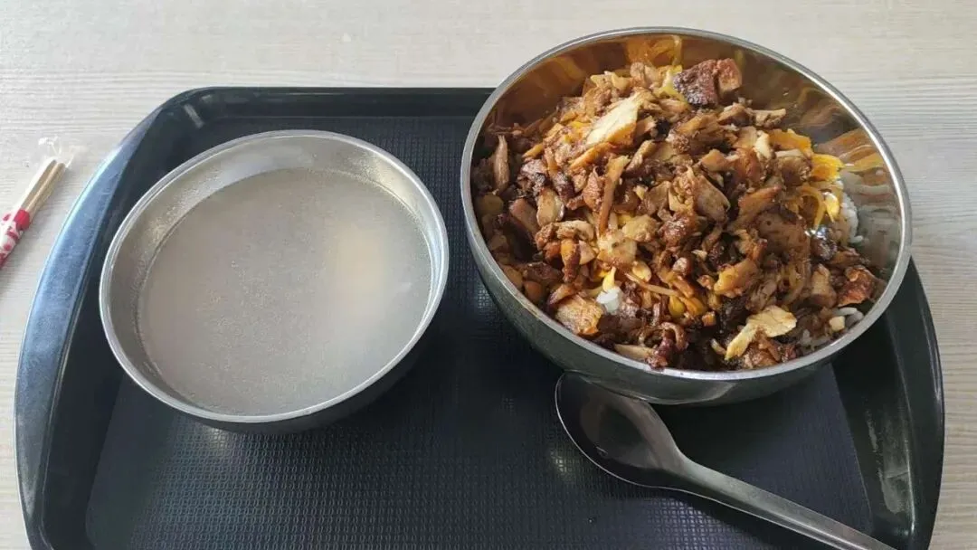当时一份好像是8块钱还是10块钱的,包含一碗汤、一份饭、一份肉、还有三四种菜,我喜欢点茄子、土豆丝、豆芽菜,米饭还可以免费续一次。