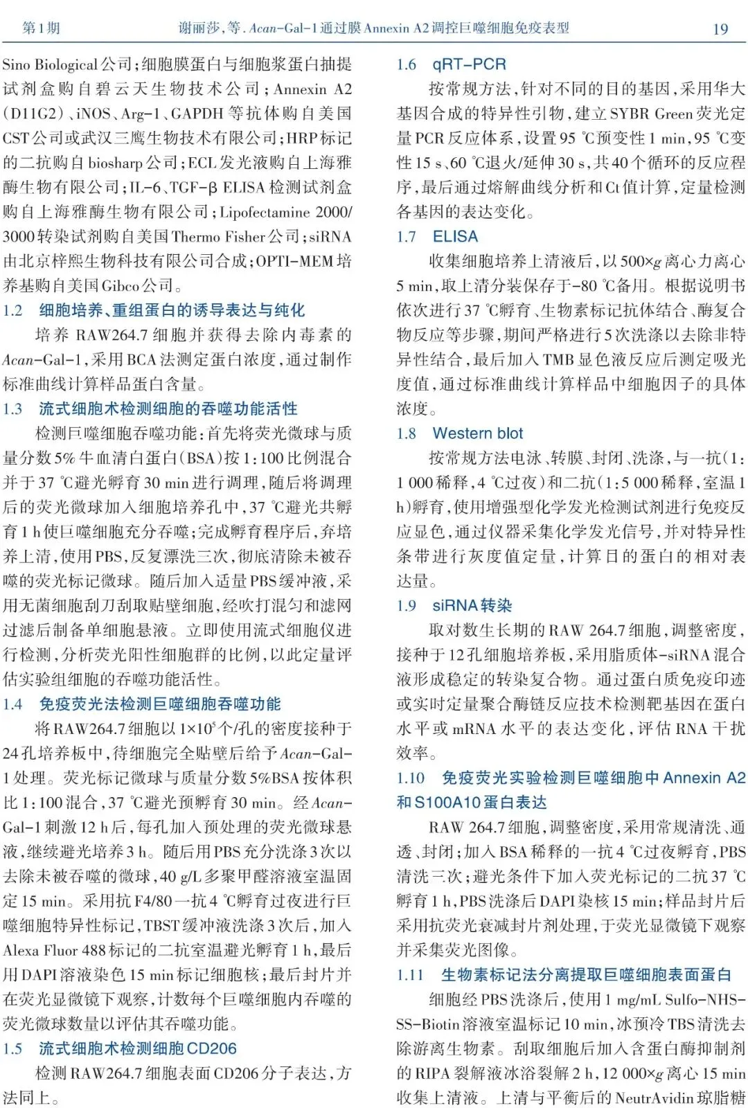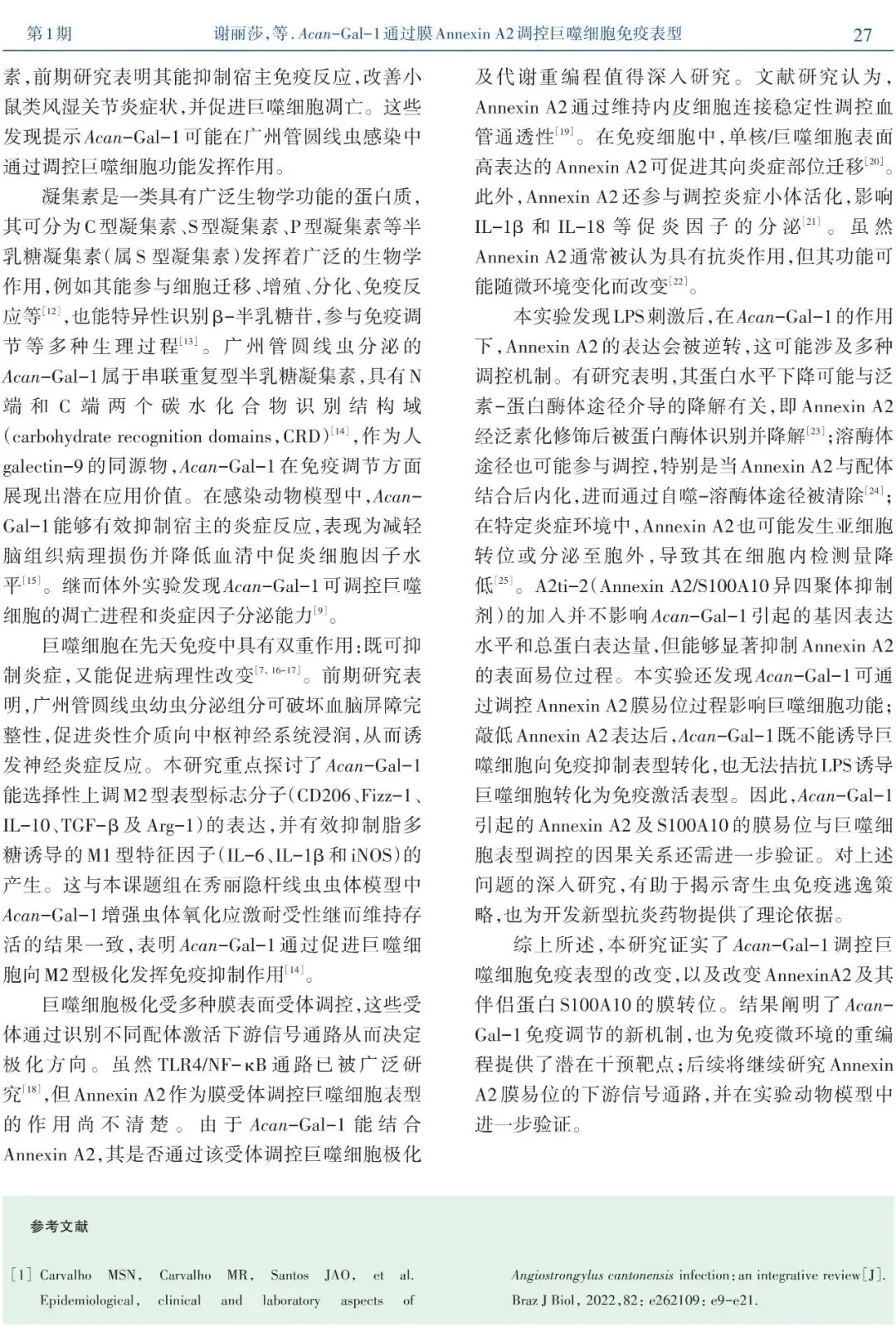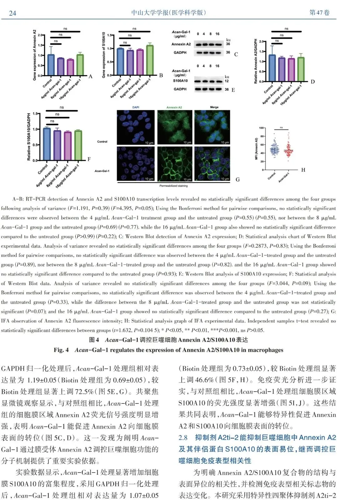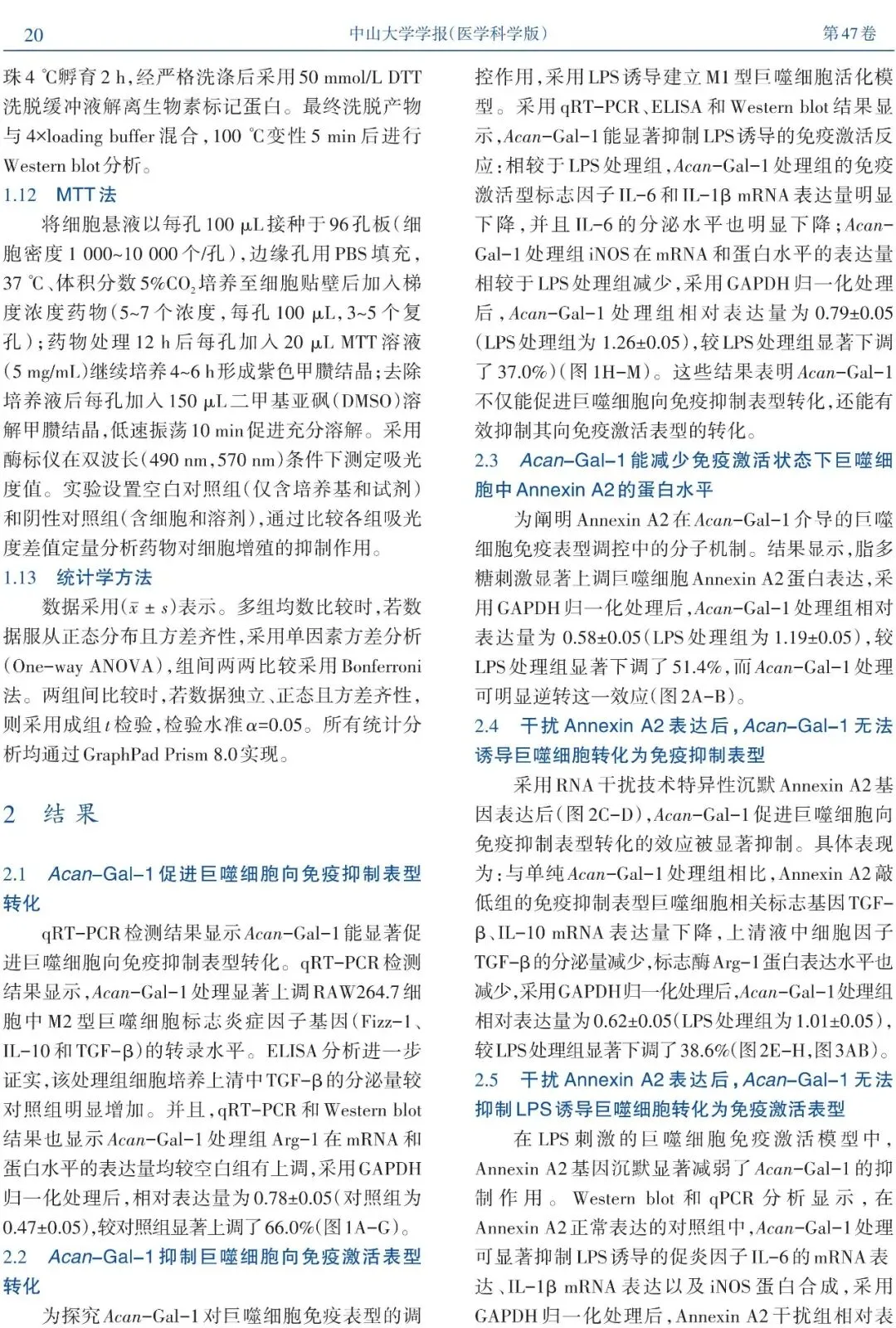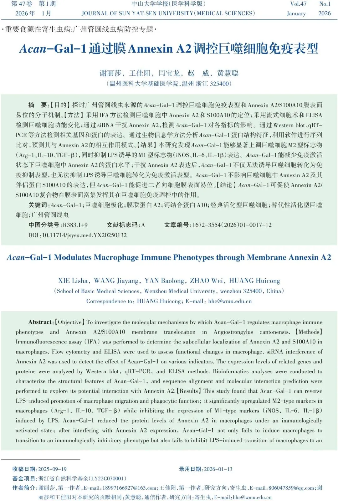 引用本文请长按绿色字,点击复制:谢丽莎,王佳阳,闫宝龙,等.Acan-Gal-1通过膜Annexin A2调控巨噬细胞免疫表型[J].中山大学学报(医学科学版),2026,47(01):17-28.