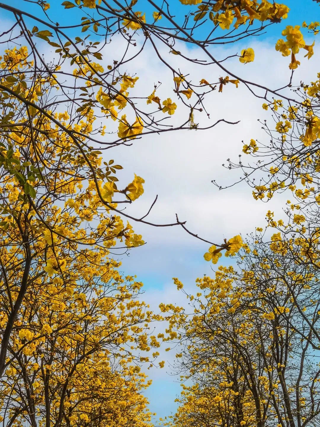 ✨ 特色:绵延数米的"最美花路",黄花风铃木曾上过电视报道