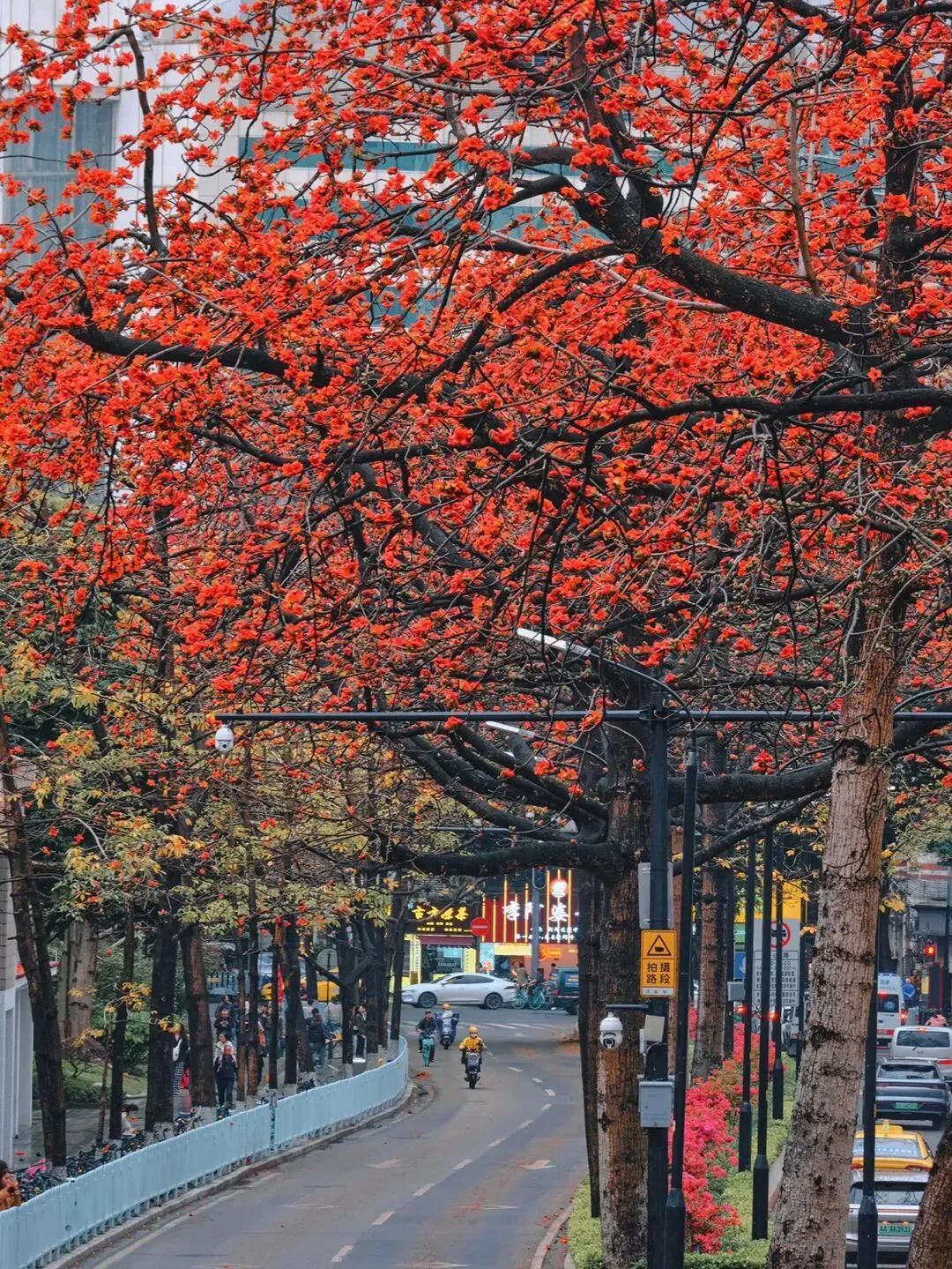 ✨ 特色:广州最美木棉花大道,挺拔枝干擎起漫天红焰,壮观非凡