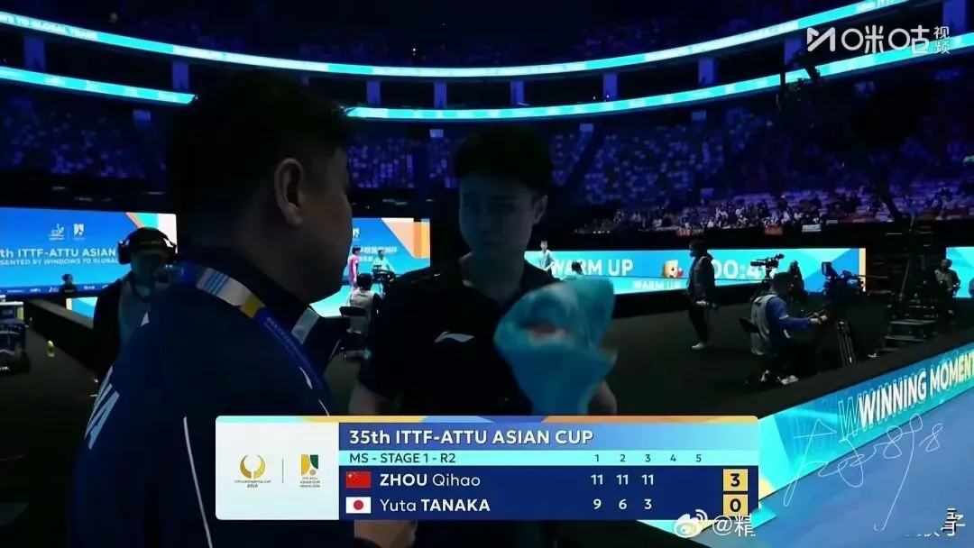 与此同时,在亚洲杯赛场上,周启豪正用行动诠释着对乒乓的热爱。在小组赛中,他表现出色,先是取得两连胜,又在与日本选手田中佑汰的较量中,以3-0(11-9,11-6,11-3)完胜对手。比赛过程中,第一局周启豪先拿局点后被追至9-10,关键时刻王皓及时叫暂停,之后周启豪状态回升,越打越顺。值得一提的是,此次亚洲杯周启豪的场外指导正是王皓,球迷纷纷表示“皓哥似乎很适合周启豪”,赛后王皓还与周启豪认真复盘,为他后续比赛助力。