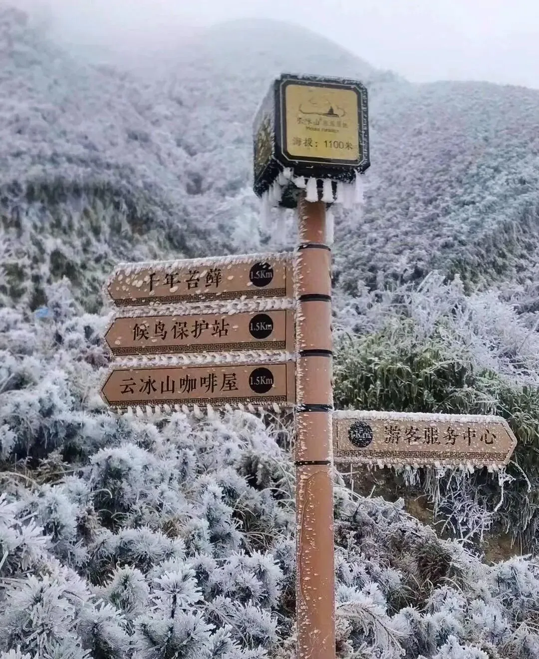 08:30 左右到达云冰山风景区,乘景区环保车前往南国雪乡之称的【云冰山景区】于湘粤交界的云冰山,以云海,冰雪奇观而得名,一览众山小的梦幻云海,奇特冰挂堪称一绝;每年的"雾凇 雪淞 雪景"奇观轮番上阵,素有南方"北国风光"的美誉(另外说明:如遇道路结冰等恶劣天气 ,景区为安全起见,云冰山中转车可能暂停且费用没的退,徒步上顶约3公里40分钟左右);