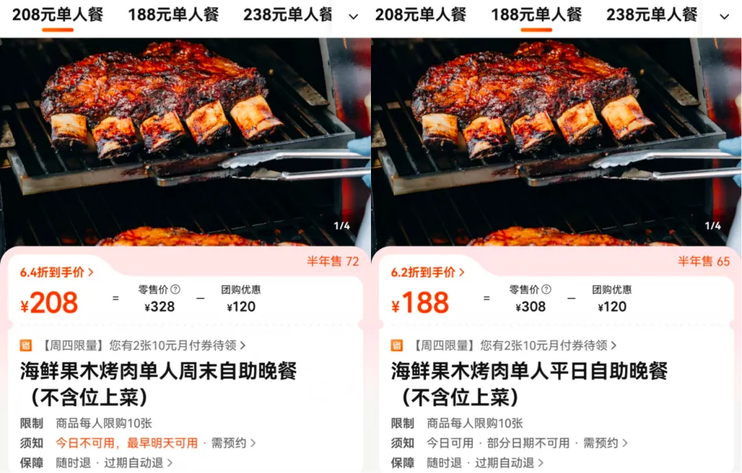 房间都是一样的,多了海鲜果木烤肉双人自助晚餐。他家平日自助晚餐要188/人,周末208/人。买这个套餐相当于多花311拿下双人自助晚餐,性价比不错。