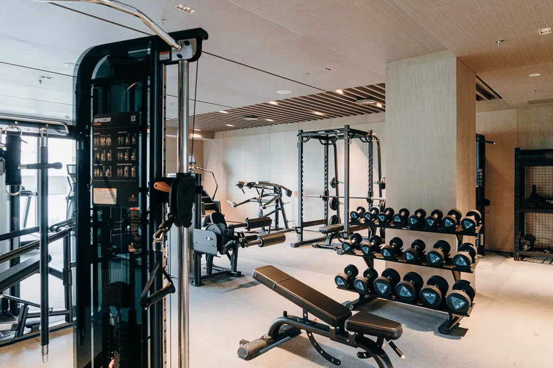 作为体育主题酒店,酒店3楼的康体中心占地面积很大。其中健身房集成了多种顶级健身设备,还有一个超大的瑜伽室,能满足从基础训练到专业塑形等多种需求。