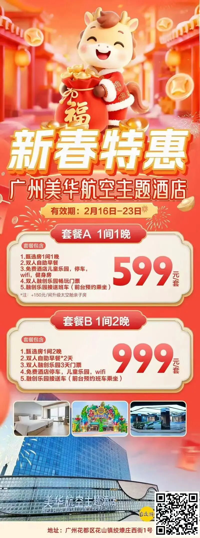 预订温馨提示:关注公众号回复【广州美华航空主题酒店】,或长按识别文中产品【海报二维码】即可购买,或点击本文左下角“阅读原文”即可进入查看产品详细信息和购买。