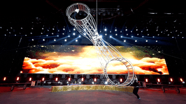 空中飞人,一直是马戏里很经典的节目,来自委瑞内拉、巴西、俄罗斯的大飞人组合,在没有威亚和绳子的牵引的高空中回荡翻转,上演花式回旋。