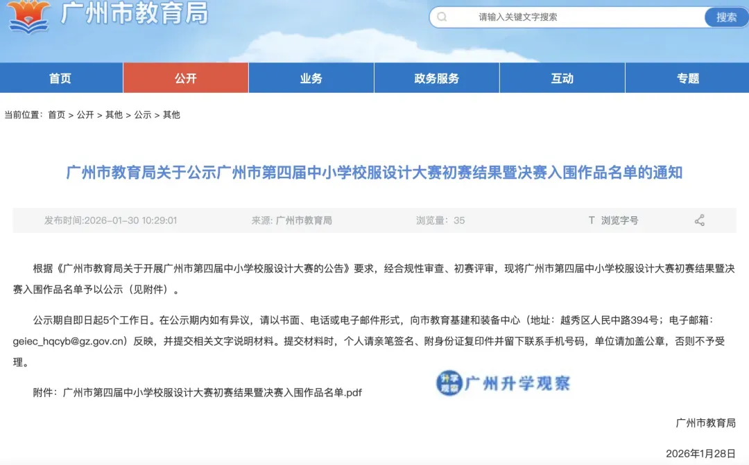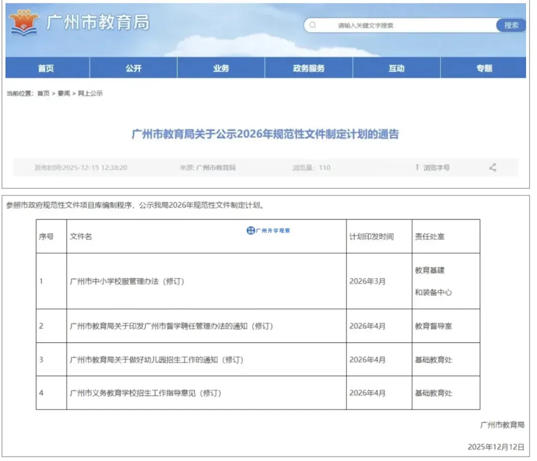 广州市教育局公示的规范化文件制定计划可知,将于2026年3月发布《广州市中小学校服管理办法(修订)》;