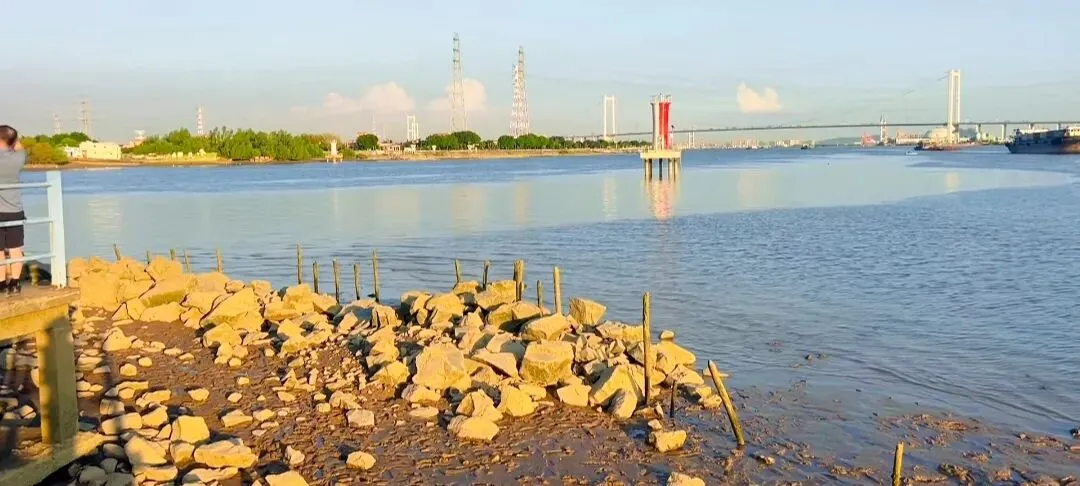 而这里,与大刀沙岛共享着同一片绝美江上日落。黄昏时,到观龙上街或观音沙大桥附近,看夕阳将天空、江水和滩涂染成金红,时常有地铁列车驶过,构成动人的城市剪影。