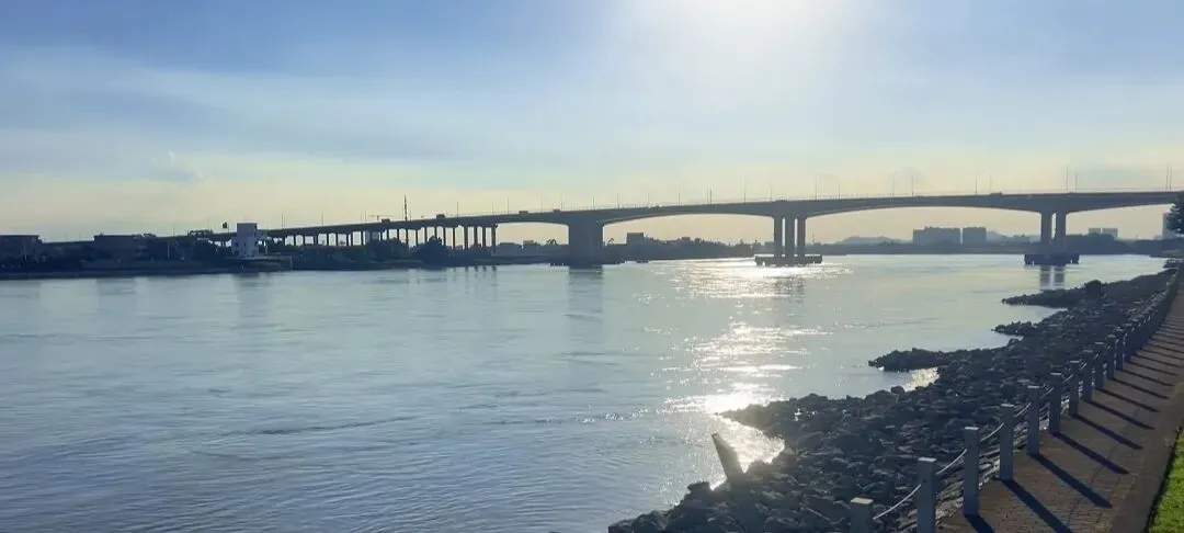 当夕阳沉入江面,对岸城市的灯火渐次亮起,坐在堤岸上,感受着江风拂面。