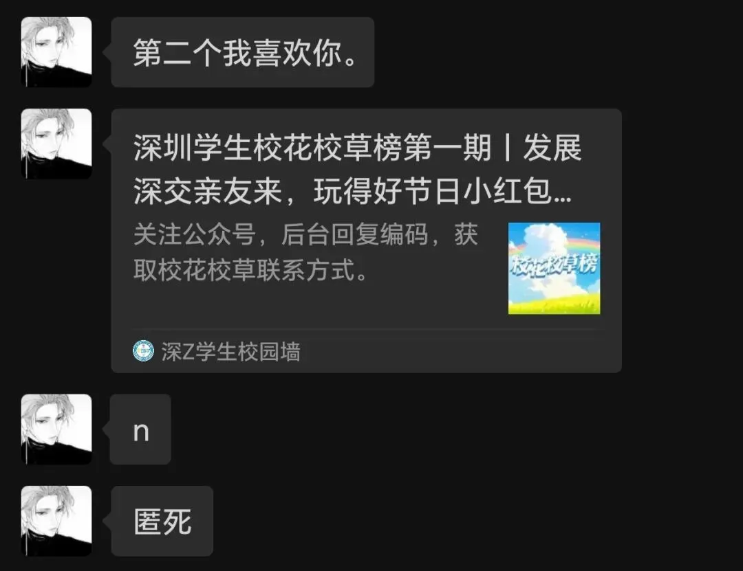 6.【树洞交友】【校花校草榜】【树洞少年说】栏目,每期所有内容均为学生投稿内容,并不代表【深圳学生校园墙】观点。7.【深圳学生校园墙】只是作为深圳各学校的非官方组织媒介,满足学生表白心意、拓展社交、留下心声、抒发情绪等需求,助力构建校园内开放且有温度的交流平台。8.【深圳学生校园墙】在此承诺,投稿永远免费。只要投稿人不愿意透露,【深圳学生校园墙】不会主动将投稿人个人信息透露给第三方,特殊情况除外。需要删除【树洞交友】【校花校草榜】【树洞少年说】投稿内容的,请联系【深圳学生校园墙】。