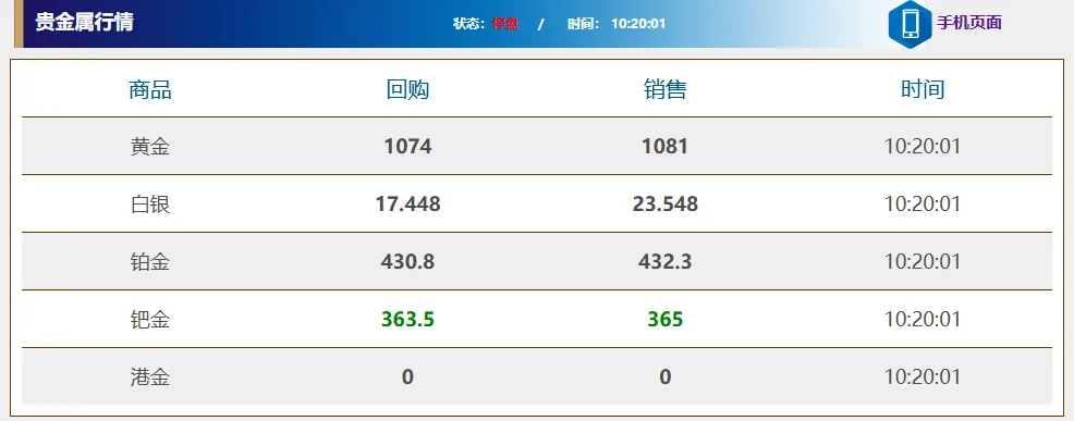 *以上价格仅是某个时间的盘价截图,最终请参考融通金六约实时报价盘为准。