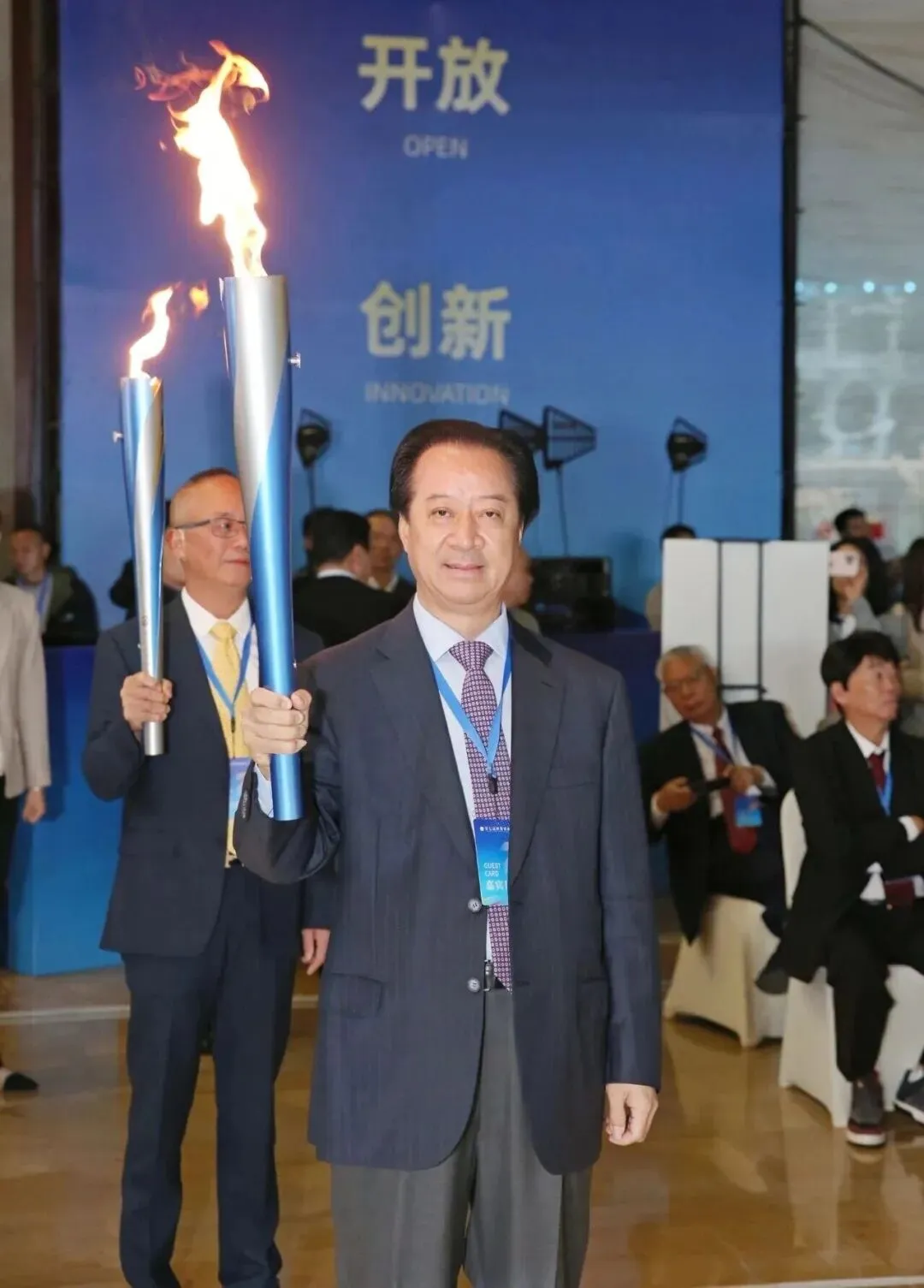 邓振龙会长(广东省客家商会会长)作为主火炬手之一,与全球客商代表一同点燃圣火。这位连续多年捐资超亿元支持家乡教育医疗事业的全国人大代表,其企业专注于新能源领域,正是客商“从传统商贸向绿色经济转型”的典型代表。
