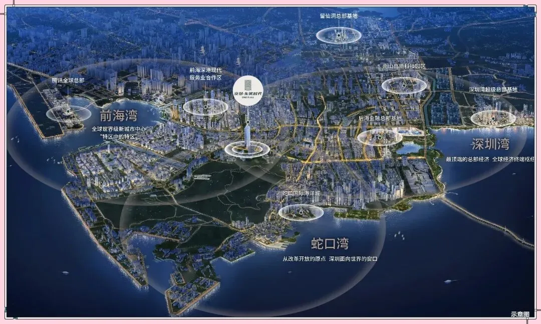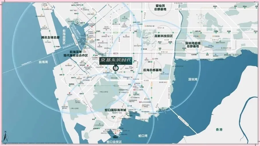 京基・东滨时代大厦是京基集团打造的前海门户高端商务综合体,落位南山前海、深圳湾、蛇口湾三湾交汇核心,毗邻腾讯、大疆等七大全球总部基地,深度承接前海产业与人才外溢红利,坐享片区超 700 万㎡旧改升级的发展潜力。