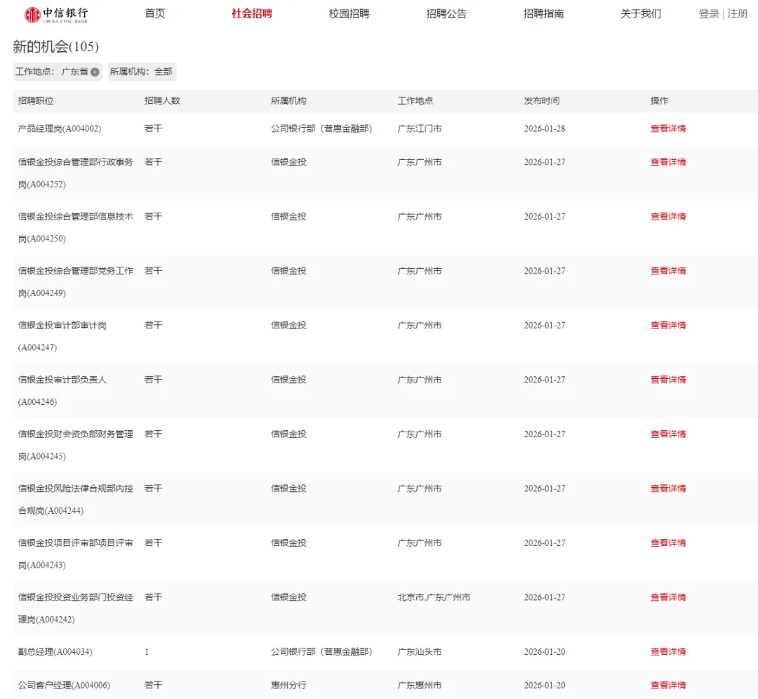 【广州】社招,105+Offer!信银金融资产投资有限公司招聘公告(招满即止)