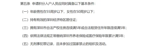 按照《深圳市入户积分指标及分值表》对应每项指标进行算积分,满足积分入户申请资格条件。