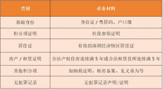 ✅深圳积分入户材料清单如下:基本材料、积分对应材料