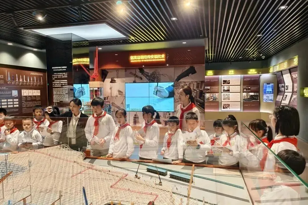 队员们走进深圳湾文化广场与钢结构博物馆,化身“小小科学家”,沉浸式感受智能钢结构的神奇与建筑科技的魅力。中建科工的技术专家为队员们讲解拆解智能钢结构传感技术,通过对比柳州文化广场与深圳湾文化广场的建筑特色差异,让队员们直观理解了新质生产力在城市地标建设中的应用。