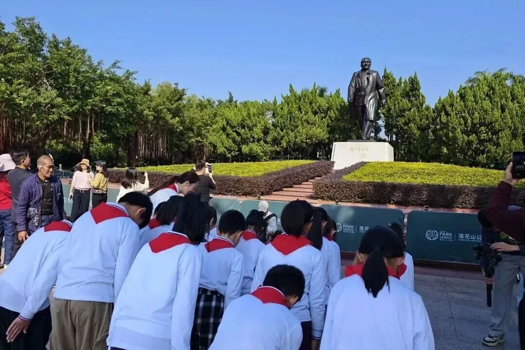 莲花山公园里,队员们在邓小平爷爷铜像前驻足瞻仰,重温改革开放的伟大历程。队员们深刻领悟到:深圳从“渔村”到“创新之都”的蜕变,正是改革开放的伟大实践;党的二十届四中全会提出,在“十五五”时期要扩大高水平对外开放、开创合作共赢新局面,正是对“改革开放”精神的传承与发展。队员们纷纷表示要将个人理想与国家发展紧紧相连,努力成长为堪当民族复兴大任的时代新人!