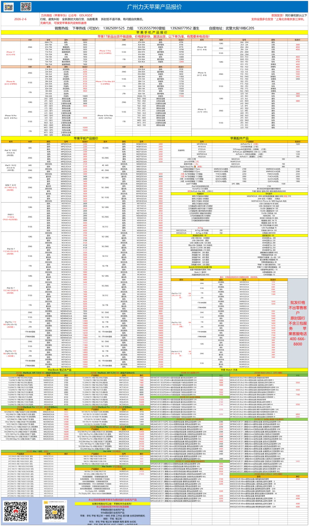 2026.2.6广州力天(广东力想购)苹果与华为荣耀报价